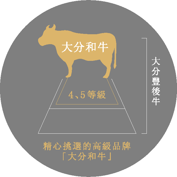 自1921年在全國品評會中榮獲最優秀獎以來,「大分豐後牛」屢次榮獲日本第一的殊榮。在其歷史誕生100週年之際,作為領先品牌誕生的就是「大分和牛」。這款和牛是從高品質的「大分豐後牛」中挑選出來的,在講究美味的農場飼養,並且肉質為4等級以上的逸品。