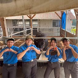 これからの大分の畜産を担う農大生が育てあげた”農大生まれの牛”です。朝夕2回、餌箱と水槽をきれいに掃除しているので、おいしそうに沢山の餌を食べてくれます。